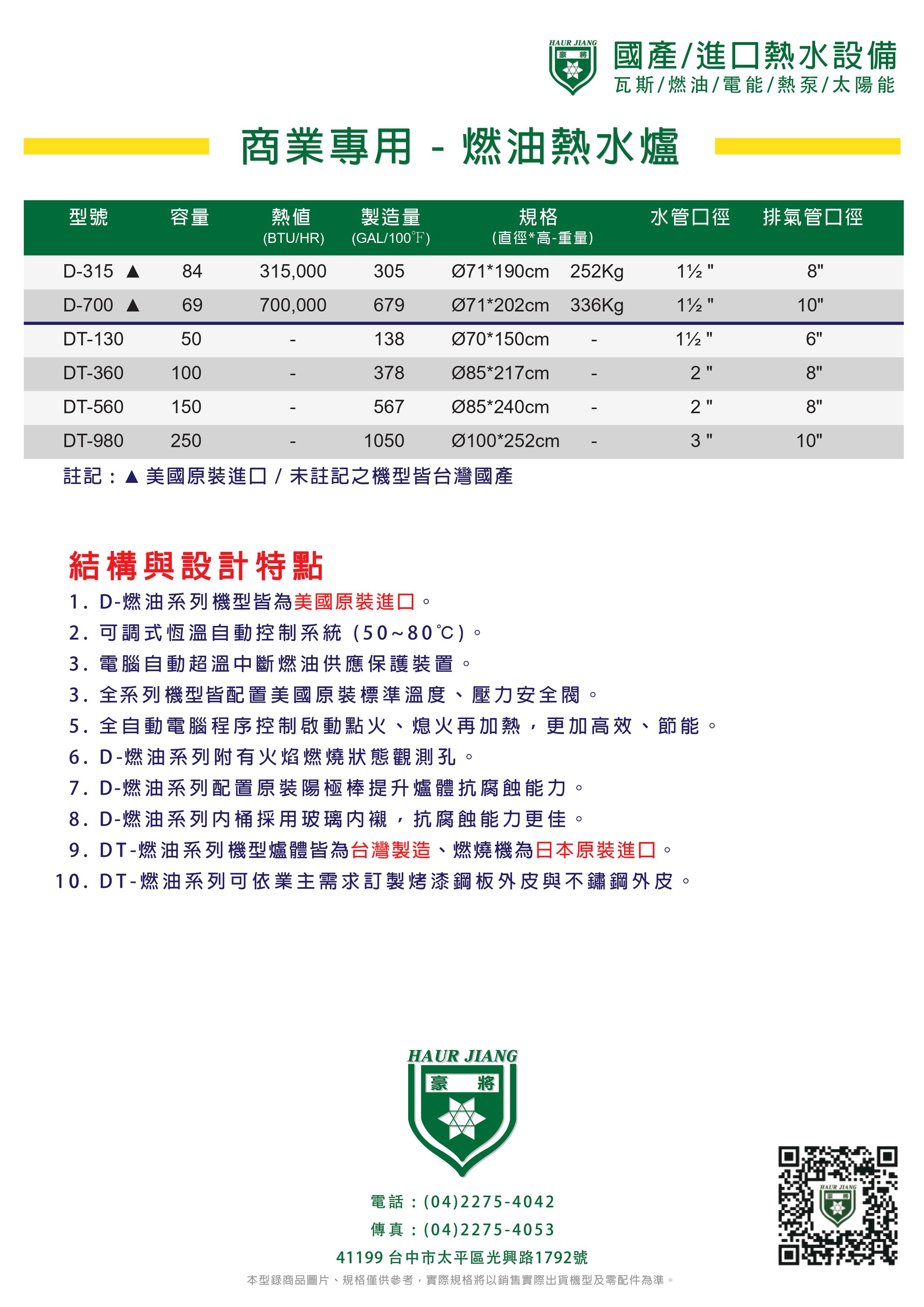 (直徑×高)水管口徑排煙管口徑DT-980250105070×150cm3"10"DT-56015056785×217cm2"8"DT-36010037885×240cm2"8"DT-13050138100×252cm1½" 6"